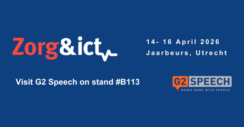 Van 14 tot en met 16 april 2026 is het G2 Speech-team aanwezig op Zorg & ICT 2026, hét grootste en meest invloedrijke health tech-event van Nederland. Tijdens deze editie in Jaarbeurs Utrecht ontmoeten zorgprofessionals, technologiepartners en beslissers elkaar om te ontdekken hoe digitale innovatie de zorg vooruithelpt.
